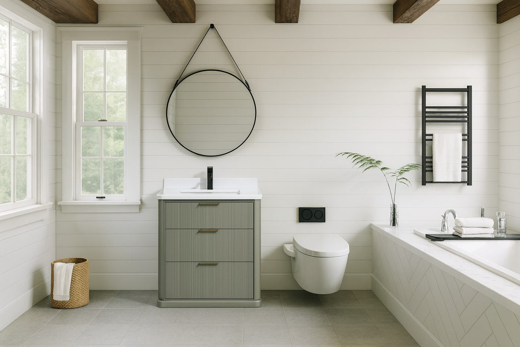 Moisture-resistant wood finish designed to prevent warping and cracking in high-humidity bathroom environments