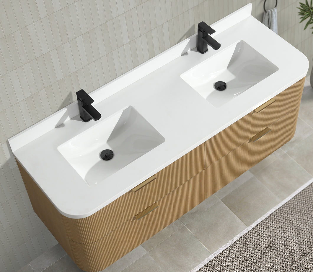 - The wood is finished to prevent warping, cracking, and to withstand the high humidity levels of bathrooms.